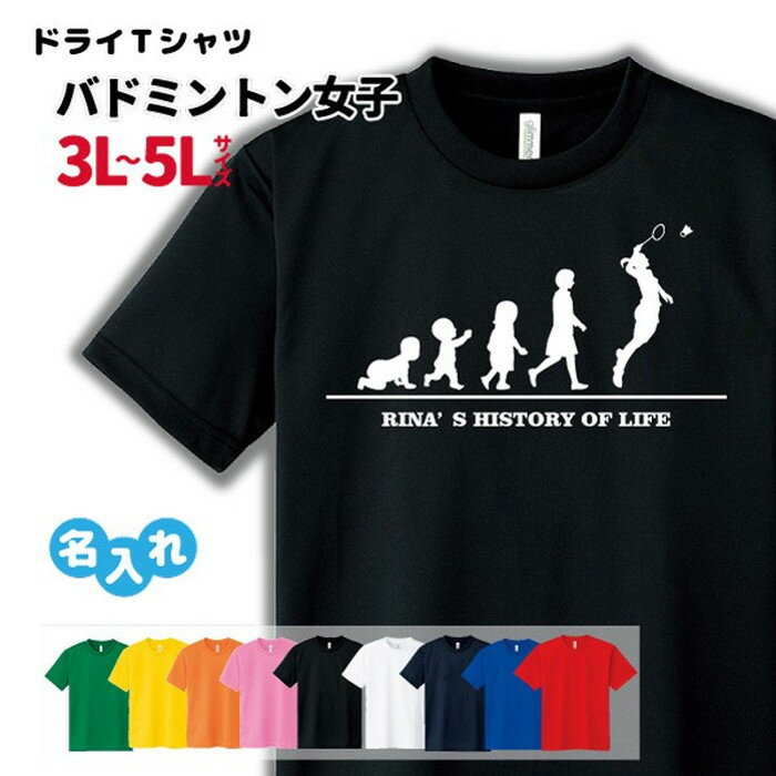 バドミントン Tシャツ ドライ 3L 4L 5L オリジナル 名入れ レディース 女 【HOL 女子 B】 サークル クラブ チーム